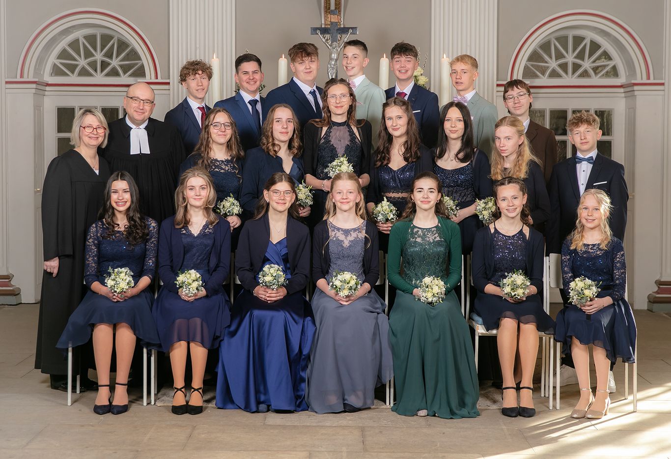 Léon Berghorn, Kian Fano, Joshua Hoyer, Linus Linke, Tarje Lübber, Jannis Niemeyer, Henri Steveker, Vincent Wagner, Zoe Dörmann, Amke Eickhoff, Fabienne Franke, Savannah-Lynn Gorges, Sohia Henke, Miena Immoor, Liticia Jach, Charleen Klapper, Franziska Klimczyk, Talina Knauf, Helen Nietfeld, Ida Nietfeld, Leni Simon, Diakonin Sonja Bachhofer, Pastor Klaus-Joachim Bachhoer